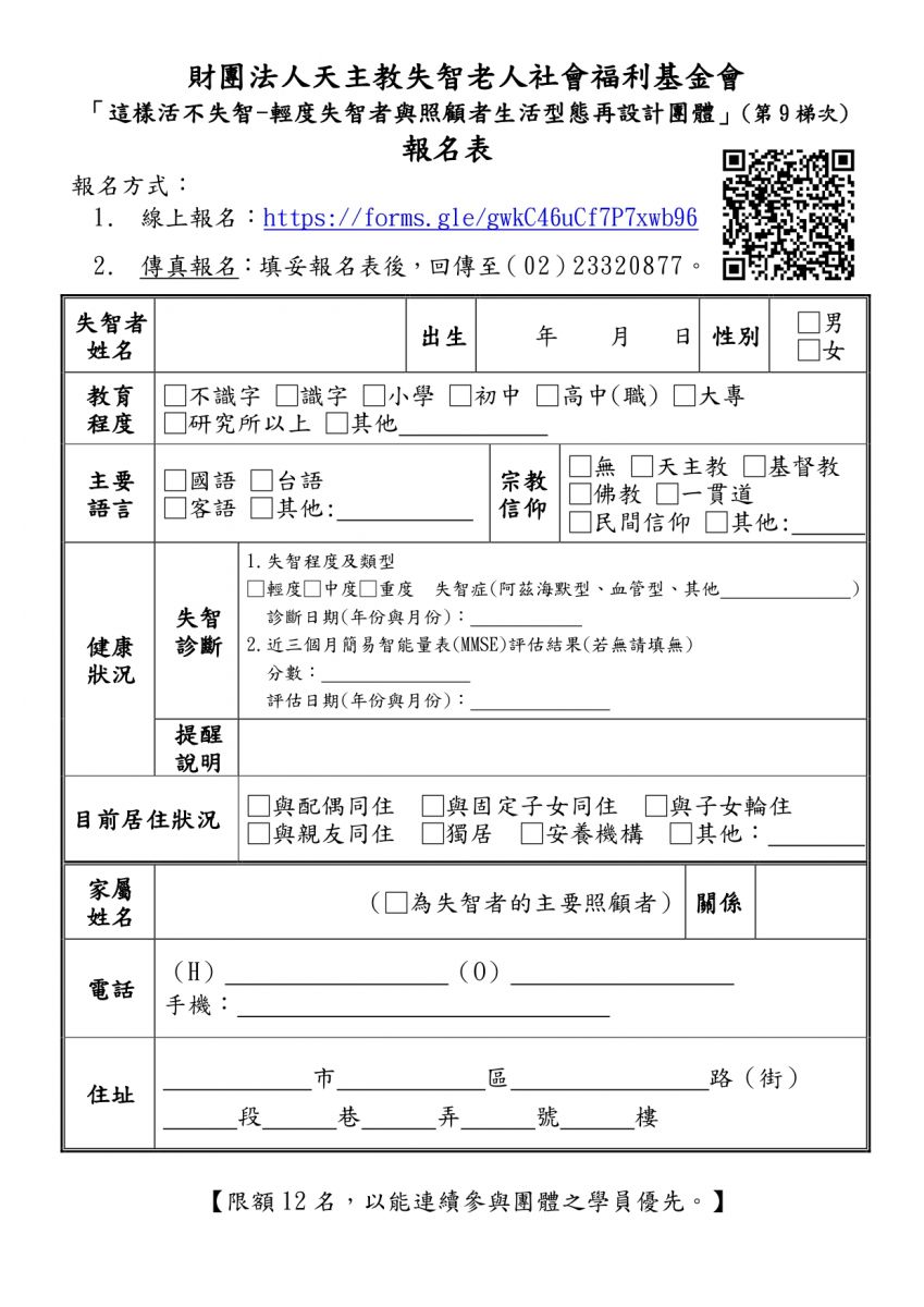 3. 輕度失智者與照顧者需一同參與完整課程。